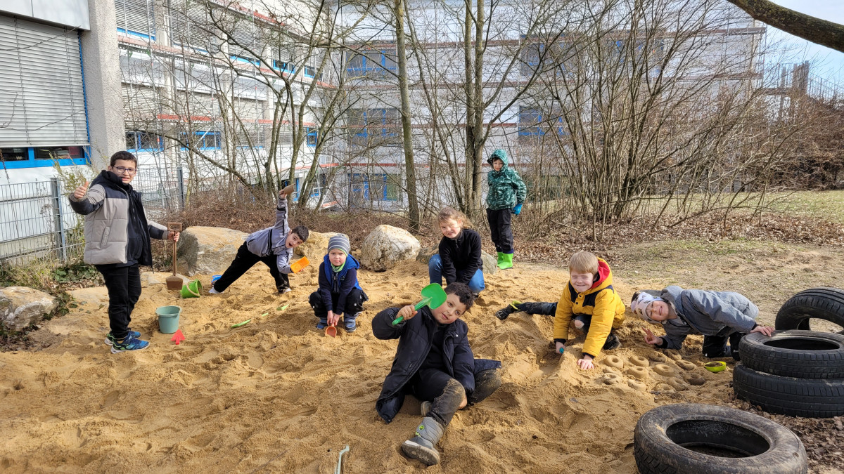 Es kann los gehen im Garten! Bei schönstem Wetter hat der Schulgarten eine große Ladung frischen Sand bekommen. Dank der neuen Sandspielsachen vom Förderverein der Grundschule konnte der Berg direkt von den fleißigen Helfern verteilt werden.