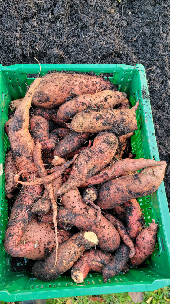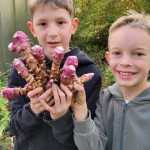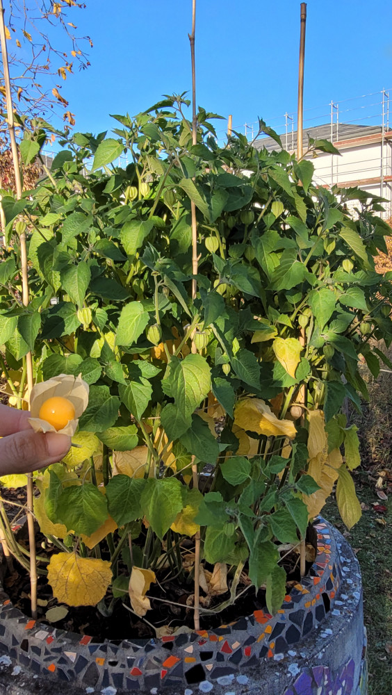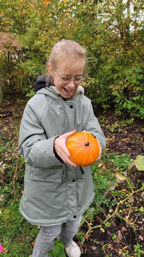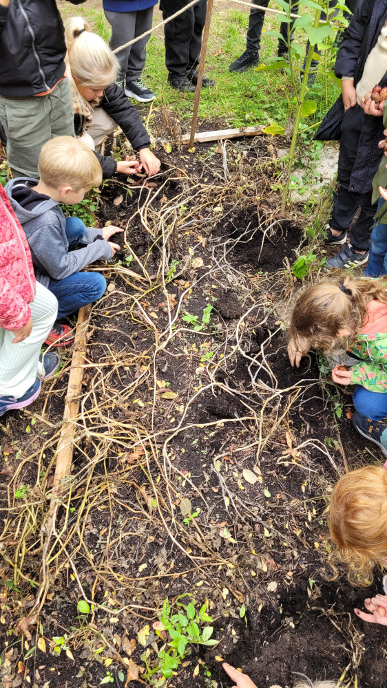 Dank des fleißigen Gießdienstes der Eltern und dem guten Wetter im Sommer konnte viel geerntet werden. Im Gewächshaus wuchsen die Tomatenpflanzen bis unter die Decke, gespendete und selbstgezogene Paprikas füllten einen ganzen Korb. Auch der Versuch Süßkartoffen und Physalis (Andenbeere) anzupflanzen war ein voller Erfolg. Zudem wurden Mais, Chilis, zahlreiches Obst (Äpfel, Birnen, Pflaumen), Beeren, Kräuter, Salat, Erbsen und überraschend Topinamur, welcher uns ins Staunen versetzte, geerntet, genascht, verteilt, zubereitet, künstlerisch genutzt und sehr wert geschätzt.