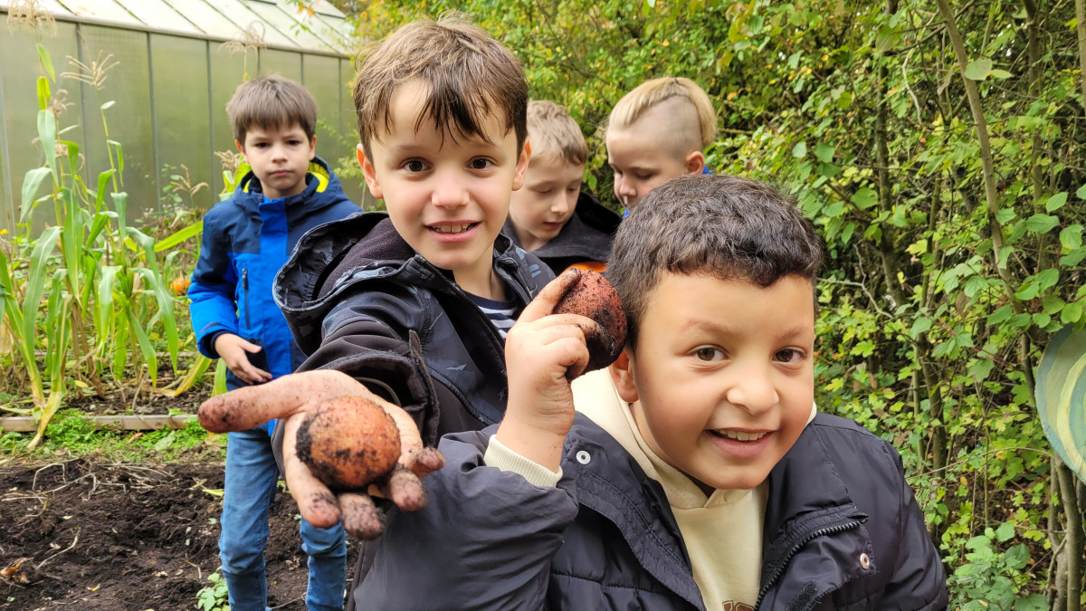 Die Garten-AG und die Klasse 3c und 3d hatten diesen Herbst viel zu tun im Schulgarten.